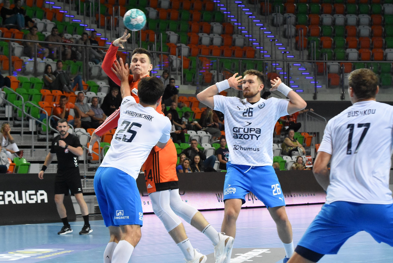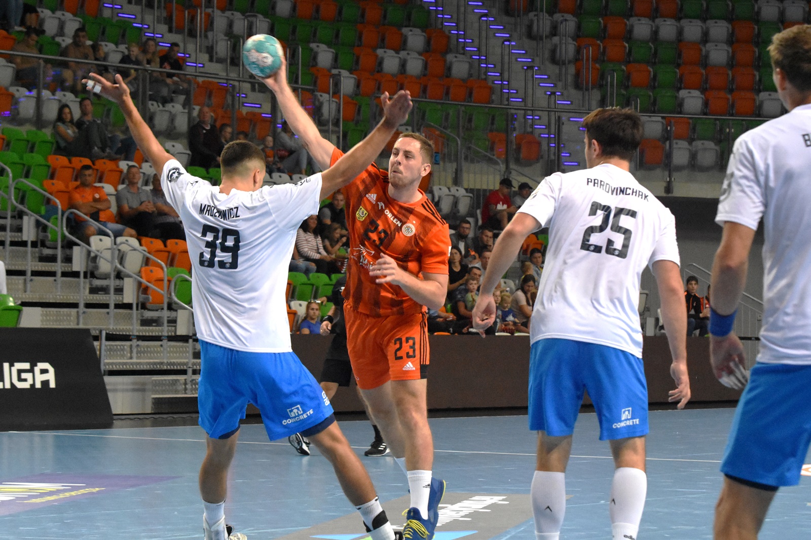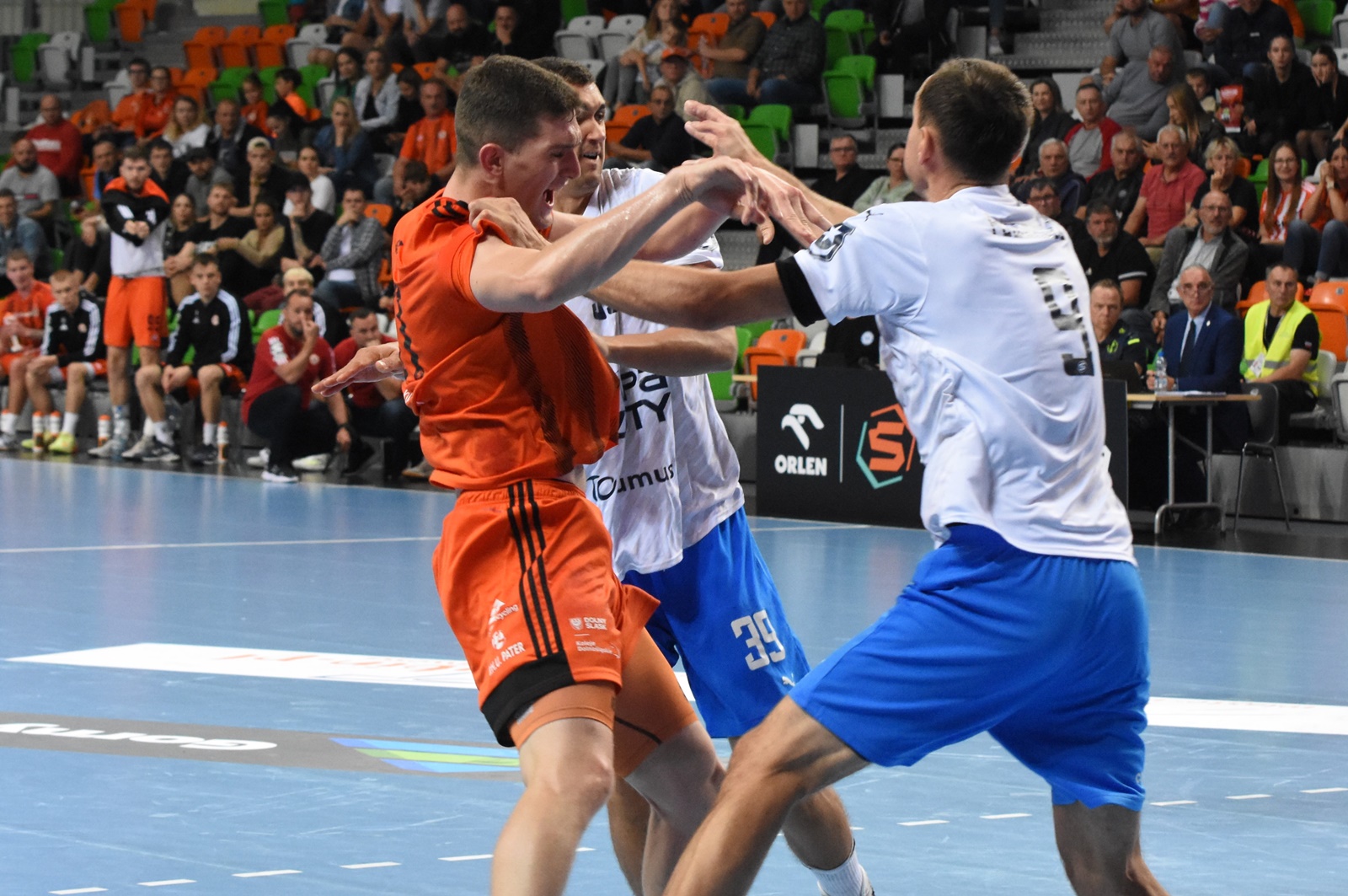 Prezentujemy galerię zdjęć autorstwa Patryka Olszaka z meczu piłkarzy ręcznych Zagłębie - Grupa Azoty Unia, który zakończył się rezultatem 21:25 (11:11).