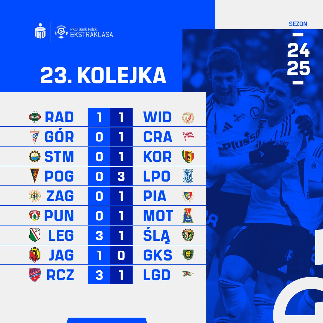 Wyniki 23. kolejki PKO BP Ekstraklasy