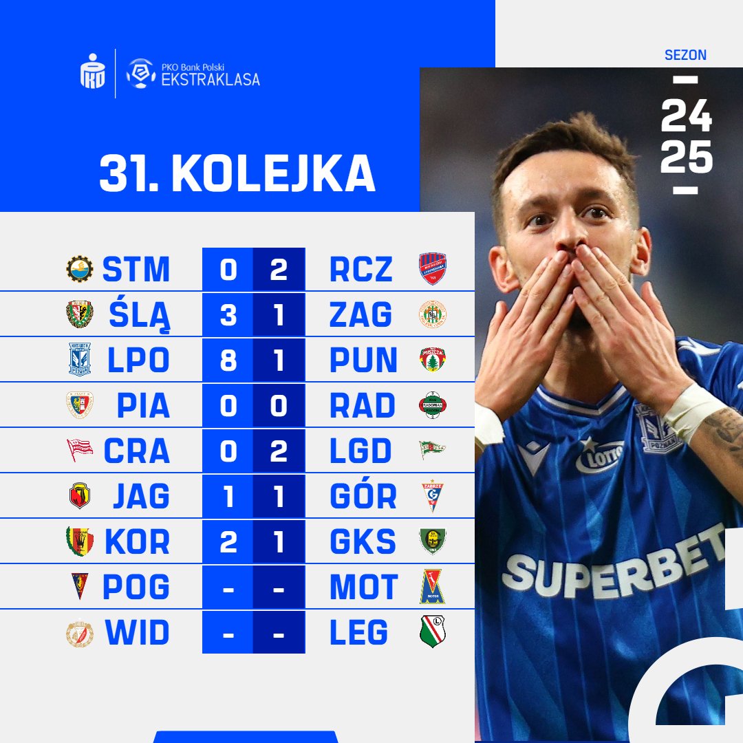 Wyniki 31. kolejki PKO BP Ekstraklasy