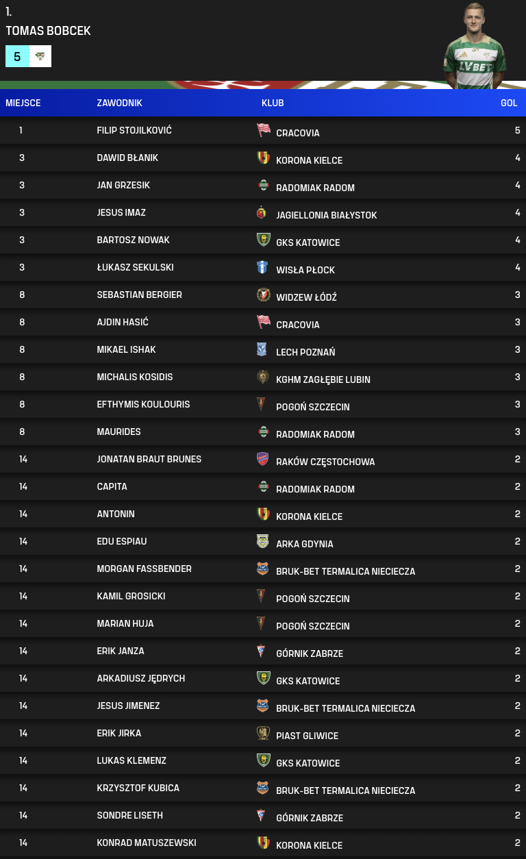 Strzelcy bramek po 7. kolejce PKO BP Ekstraklasy