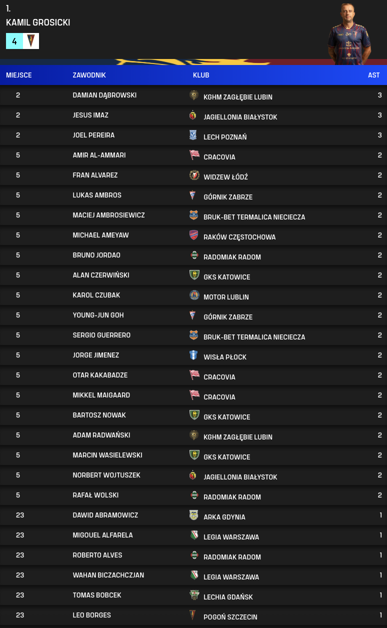 Asystenci po 7. kolejce PKO BP Ekstraklasy