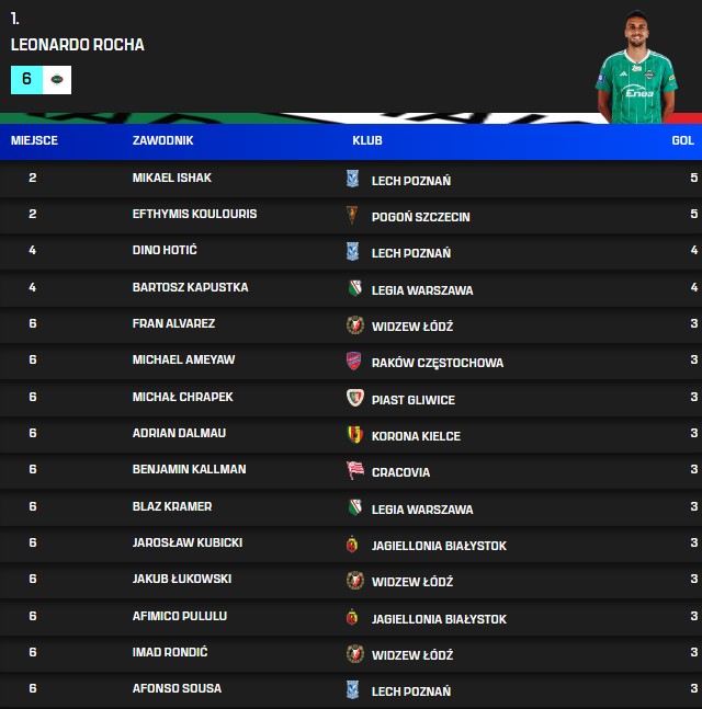 Strzelcy bramek po 8. kolejce PKO BP Ekstraklasy