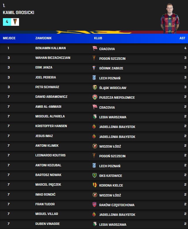 Asystenci po 8. kolejce PKO BP Ekstraklasy