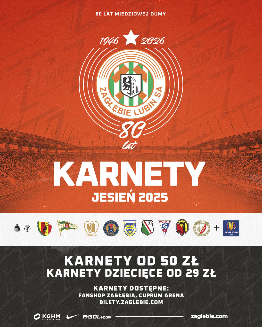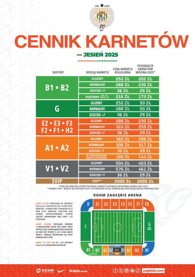 Online: od 26 czerwca (czwartek) od godziny 12:00 na stronie bilety.zaglebie.com (z wysyłką od 1 lipca)