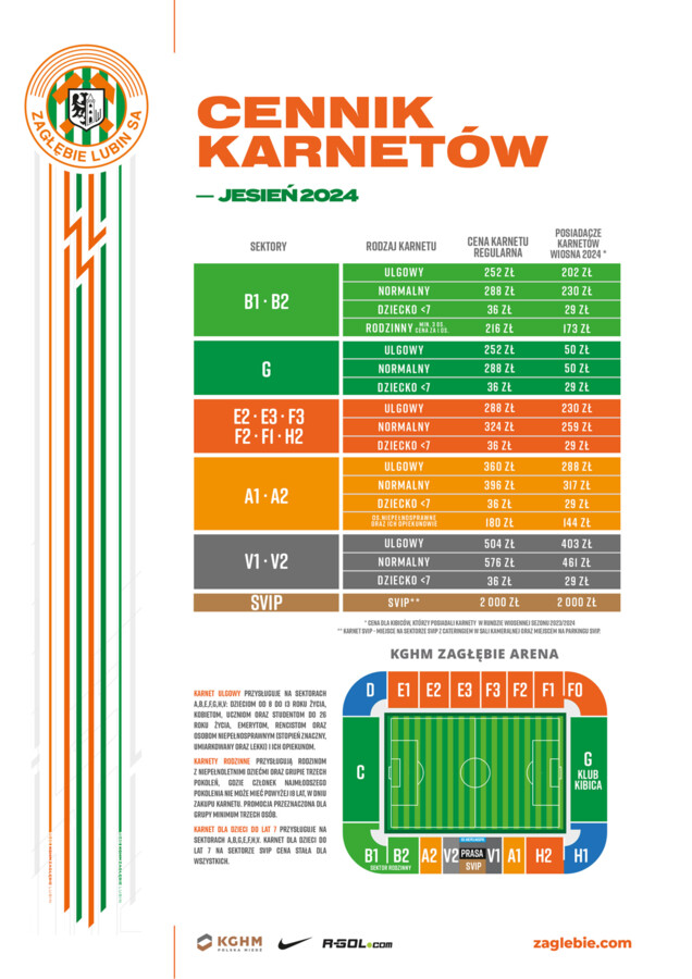 - On-line za pośrednictwem platformy bilety.zaglebie.com - dostępna od 1 lipca