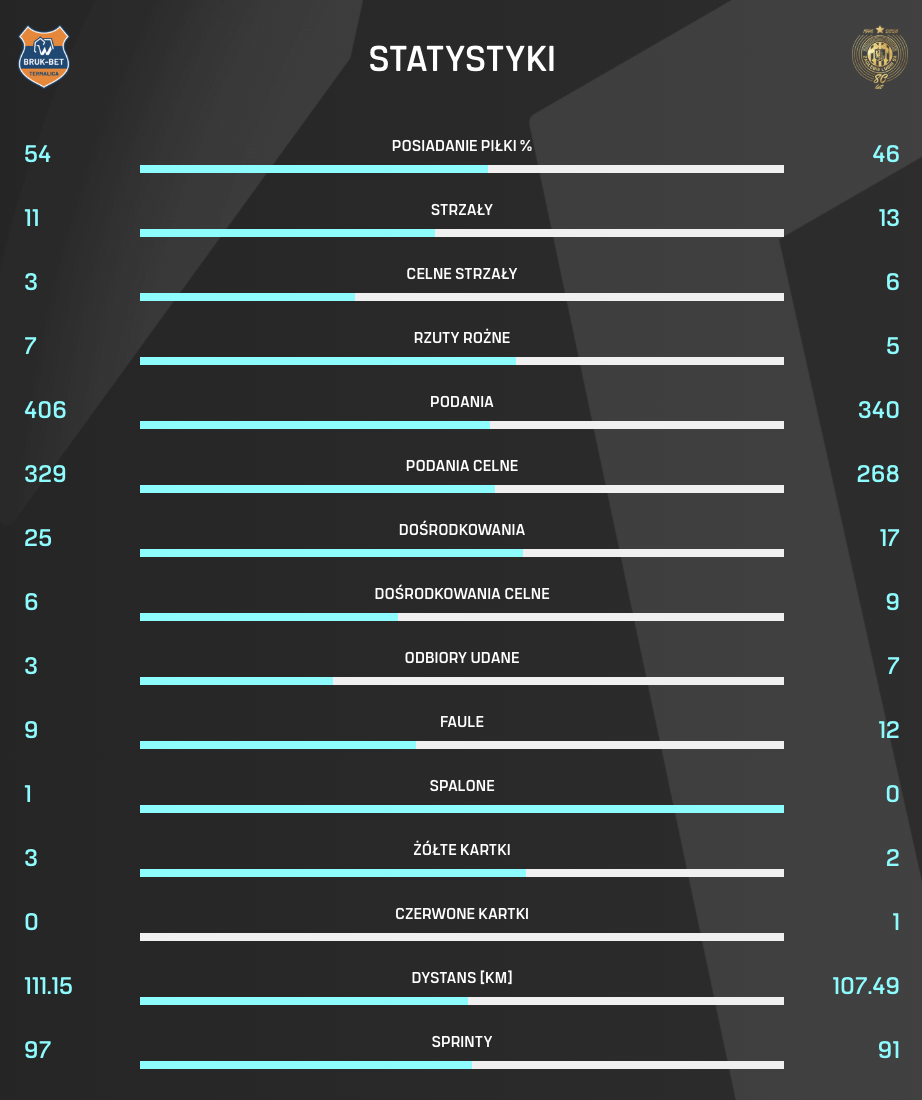 Polecamy Waszej uwadze statystyki piątkowego meczu 13. kolejki PKO BP Ekstraklasy, w którym lubinianie zremisowali 1:1 na wyjeździe z Bruk-Bet Termaliką Nieciecza.