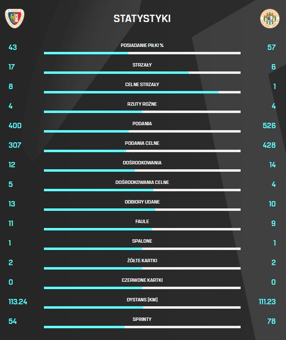 Zapoznajcie się ze statystkami poniedziałkowego meczu 28. kolejki PKO BP Ekstraklasy, w którym Zagłębie Lubin uległo 0:2 na wyjeździe Piastowi Gliwice.