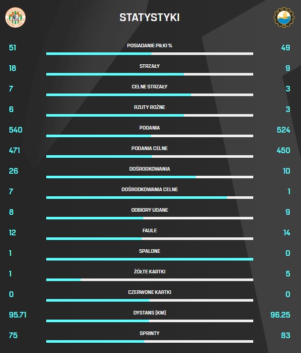 Zapoznajcie się ze statystykami po piątkowym meczu Zagłębia Lubin ze Stalą Mielec, który zakończył się rezultatem 0:0.