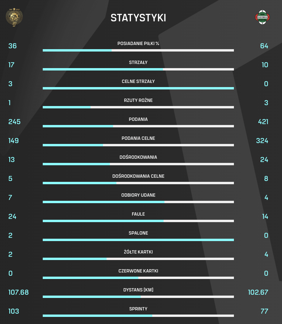 W 28. kolejce PKO BP Ekstraklasy zawodnicy Leszka Ojrzyńskiego pokonali 1:0 drużynę Radomiaka Radom. Polecamy zapoznanie się ze statystykami tego pojedynku.