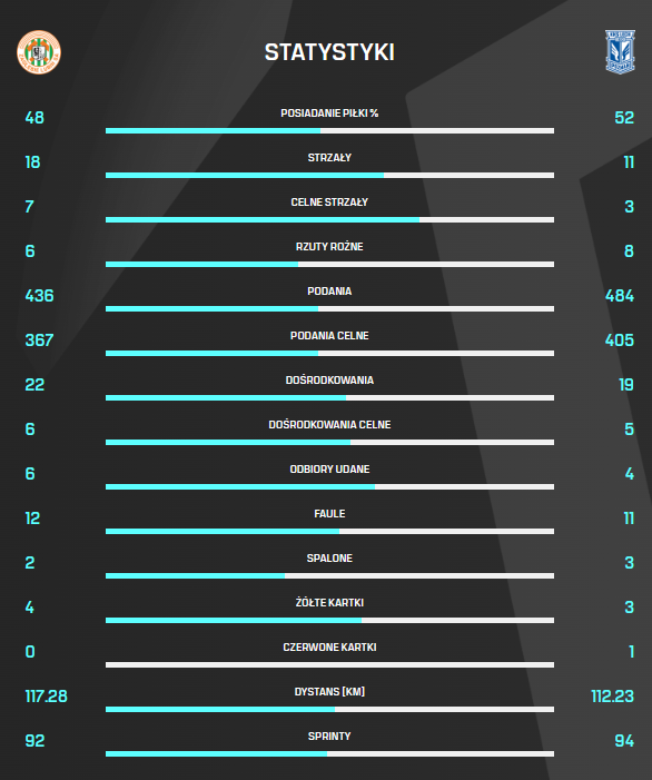 Optyczna przewaga Zagłębia Lubin ma również odzwierciedlenie w wielu statystykach, które możecie sprawdzić poniżej.