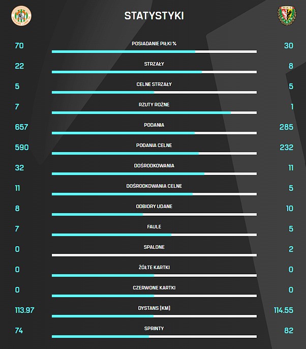 Polecamy Waszej uwadze statystyki piątkowego meczu 19. kolejki PKO BP Ekstraklasy pomiędzy Zagłębiem Lubin a Śląskiem Wrocław, który zakończył się naszą porażką 1:2.