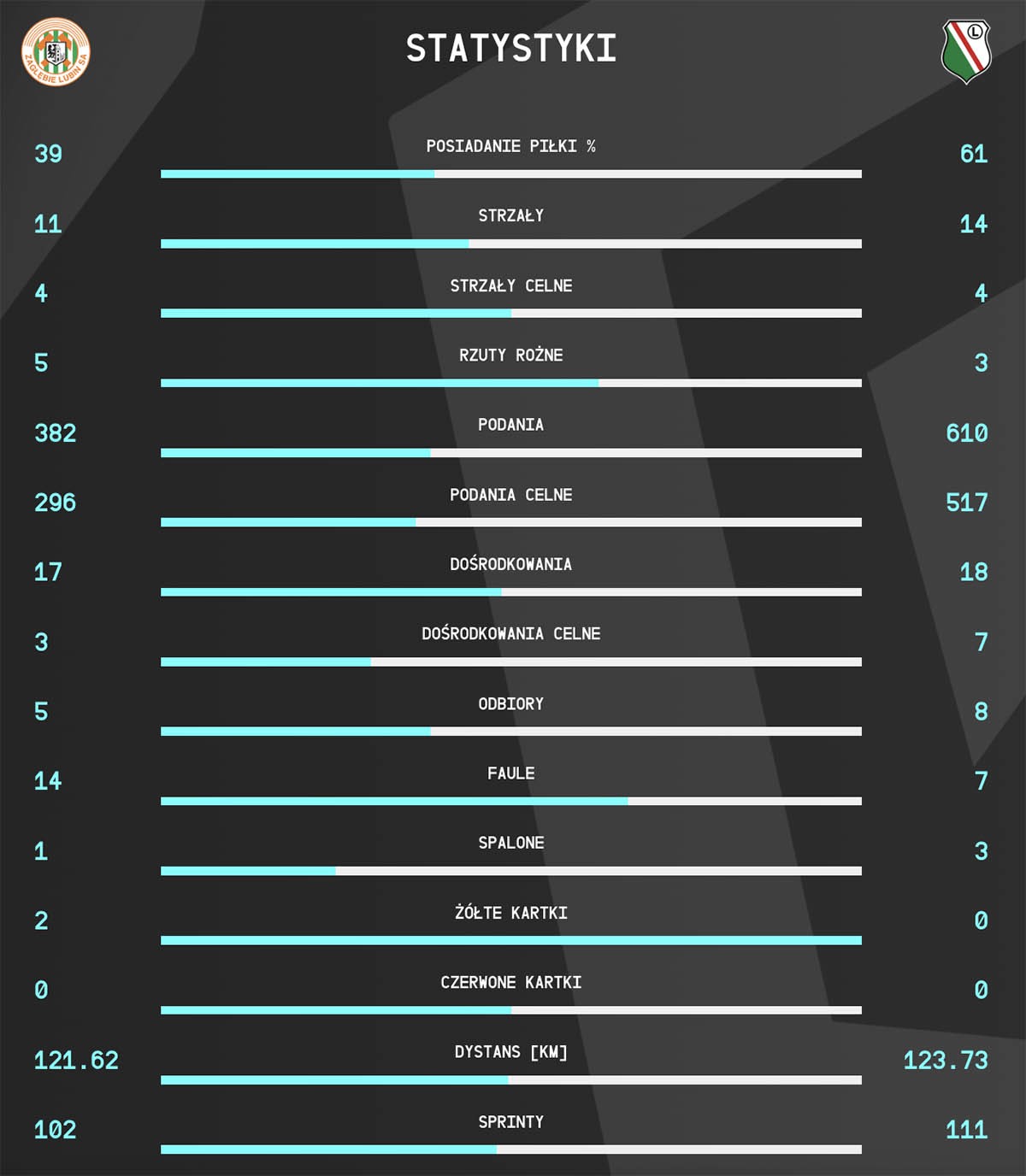 Statystyki | Zagłębie Lubin 1:2 Legia Warszawa