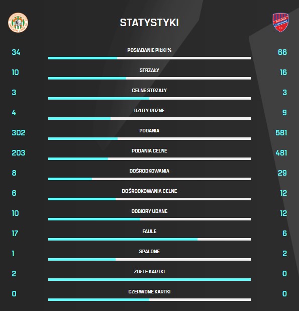 Zachęcamy do zapoznania się ze statystykami spotkania 31. kolejki PKO BP Ekstraklasy pomiędzy Zagłębiem Lubin a Rakowem Częstochowa, w którym nasza drużyna zwyciężyła 2:0.