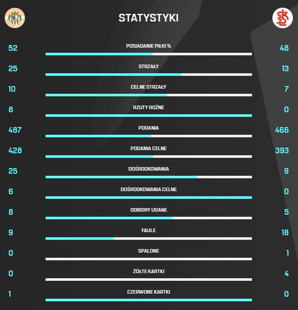 Statystyki po spotkaniu Zagłębia Lubin z ŁKS-em Łódź wyraźnie wskazują na nasz zespół. Podopieczni Waldemara Fornalika byli od swoich rywali lepsi w zasadzie w każdym elemencie piłkarskiego rzemiosła.